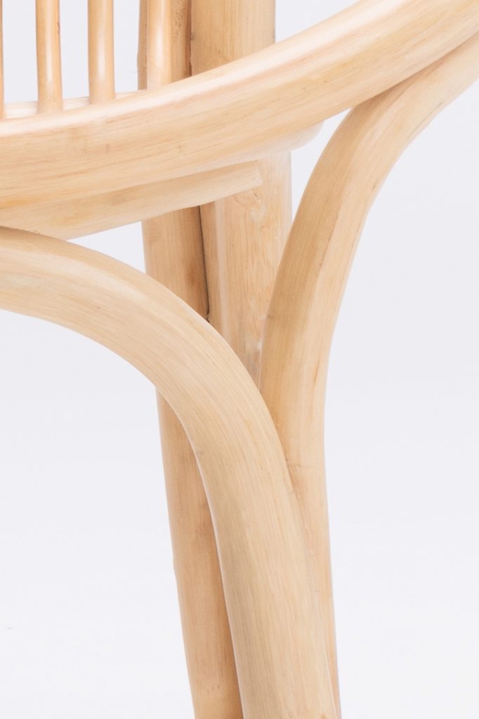该产品进行了工艺改进和创新。原本的加工方式是把3米5长的藤条切成小段再进行拼凑,改良之后的藤椅充分利用了藤材料可高度弯曲的特性,展现了藤条赋予家具的完美曲线,同时也节省了材料。